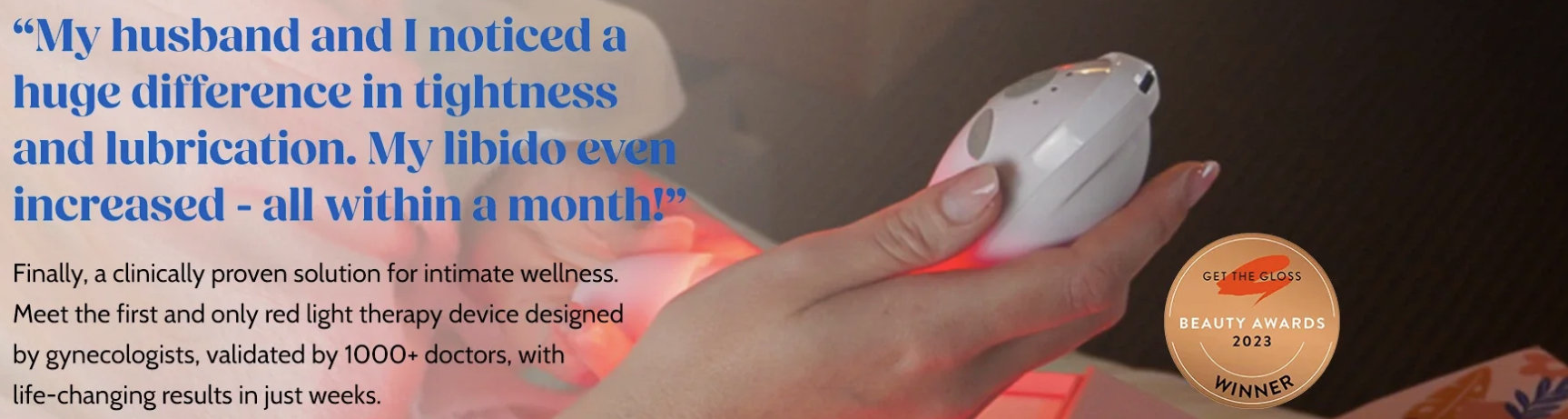 - Red Light Therapy: The red light penetrates deep into the vaginal tissue, promoting increased blood flow and collagen production. This helps to repair and rejuvenate the tissue, improving elasticity and overall vaginal health.